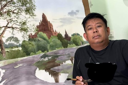 Moe Nyo (မိုးညို) is a Burmese painter known for his distinctive watercolor style. He specializes in capturing isolated corners of traditional architectural sites through his Poem series, ....
